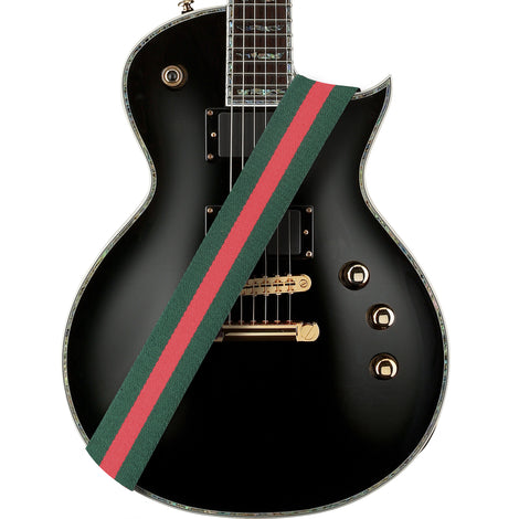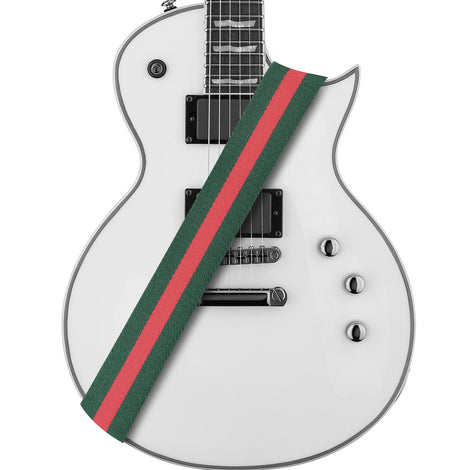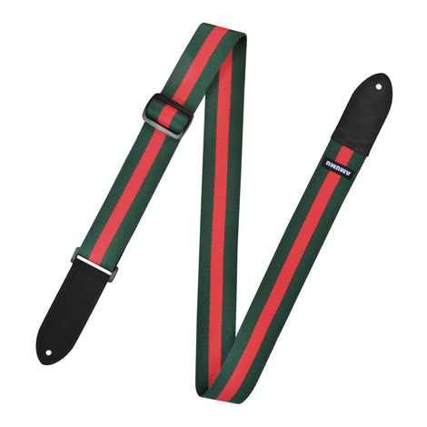 AMUMU Guitar Strap Green Red Racing Stripes -CO17W-GR