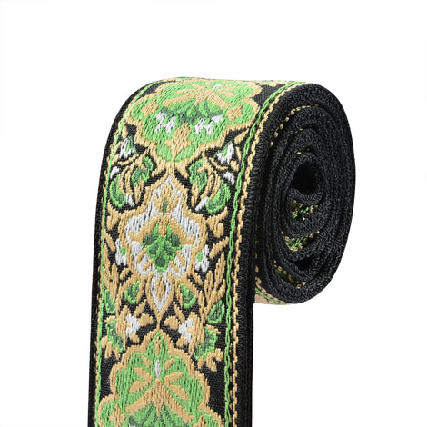- 2" wide strap with Green vintage jacquard pattern and black soft nylon backing