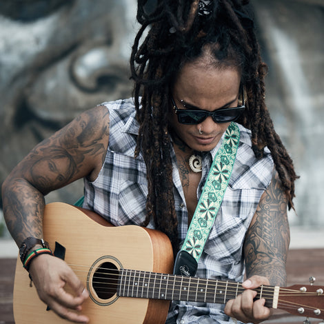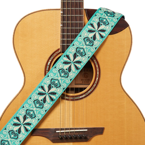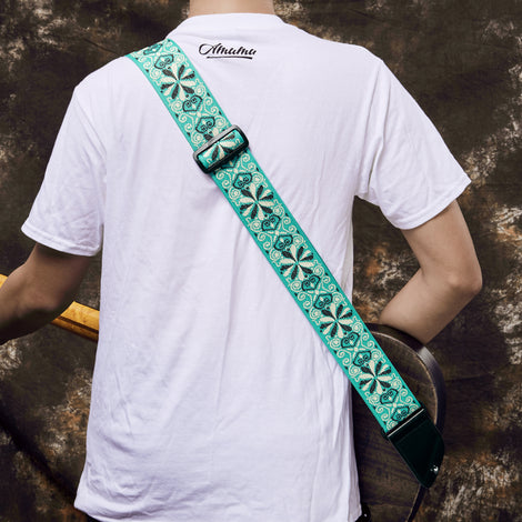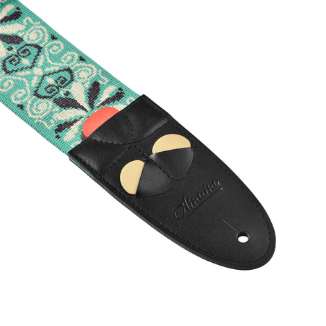 AMUMU Hootenanny Jacquard Woven Guitar Strap Green Polyester -PET02J-GN