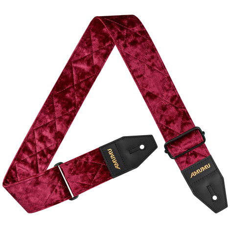 AMUMU Velvet Deluxe Guitar Strap – Burgundy Crystal Velvet with Top Grain Leather Ends, 2" Wide, Adjustable for Acoustic, Electric & Bass Guitars VL-LUX-BUR-R