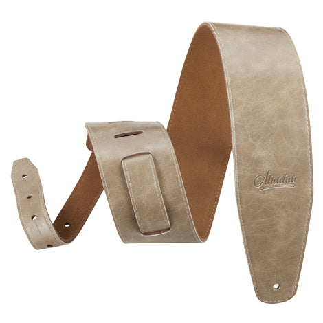 Amumu Cowhide Leather Apricot White Guitar Strap -LE17-AW