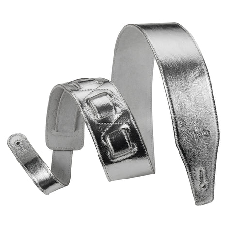 Amumu Cowhide Leather Shiny Silver Guitar Strap -LE15-SV