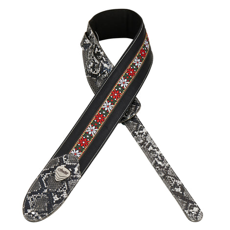 Amumu Suede Leather Jacquard Cotton Inlay Black Guitar Strap -LE23-DG