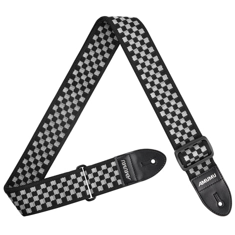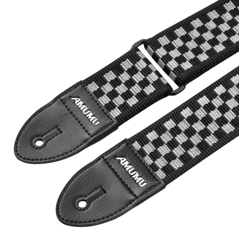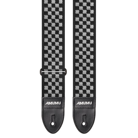 AMUMU Checkergrid Woven Guitar Strap – High-Performance Microfiber Leather Ends & Heavy-Duty Metal Hardware – 2" Wide Adjustable Strap for Acoustic, Electric, and Bass Guitars PP01J-BW-V