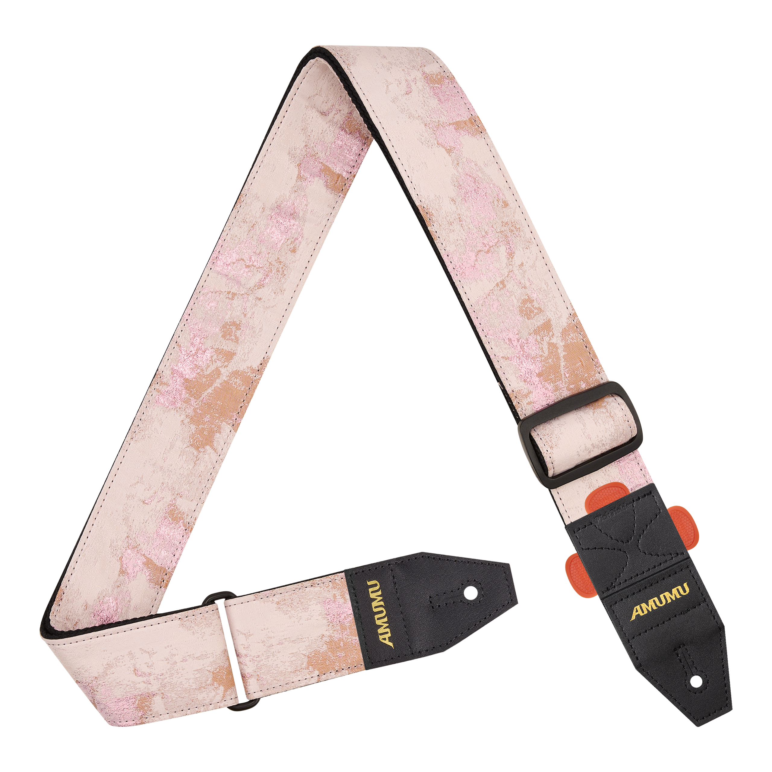 AMUMU CO37P-PK-R 2" Guitar Strap – Pink Glow Woven with Top Grain Leather Ends & Quick-Fetch Pick Holder, Adjustable for Acoustic, Electric & Bass Guitars