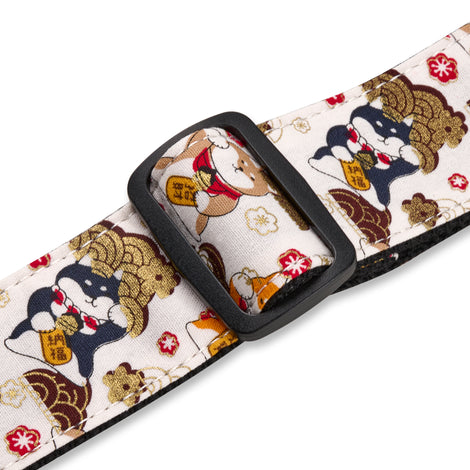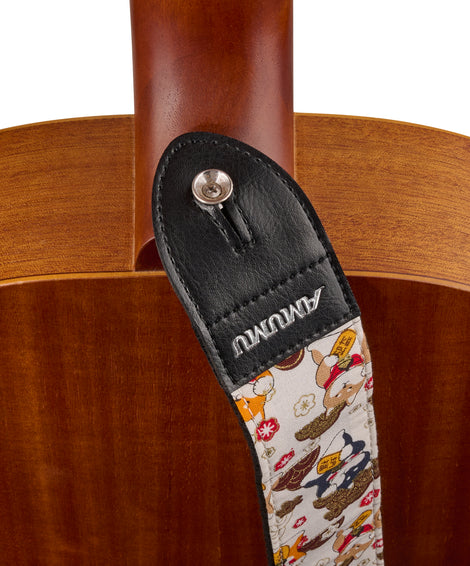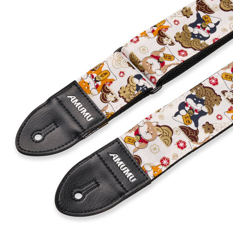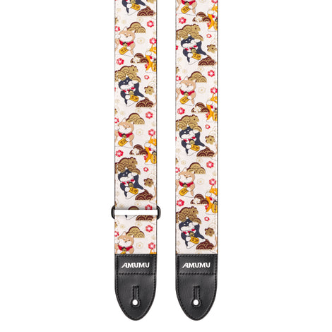 AMUMU Lucky Cat Guitar Strap – 2" Maneki-Neko Pattern | Adjustable & Comfortable with Microfiber Leather Ends -CV05P-ML-V