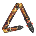 The AMUMU PET11P-OB-R features the Amber Planet orange–blue print on durable 2" polyester webbing, reinforced with top grain leather ends for secure, scratch-resistant performance. Adjustable from 96–160cm, it offers vibrant style, comfort, and lasting durability for acoustic, electric, and bass guitars.