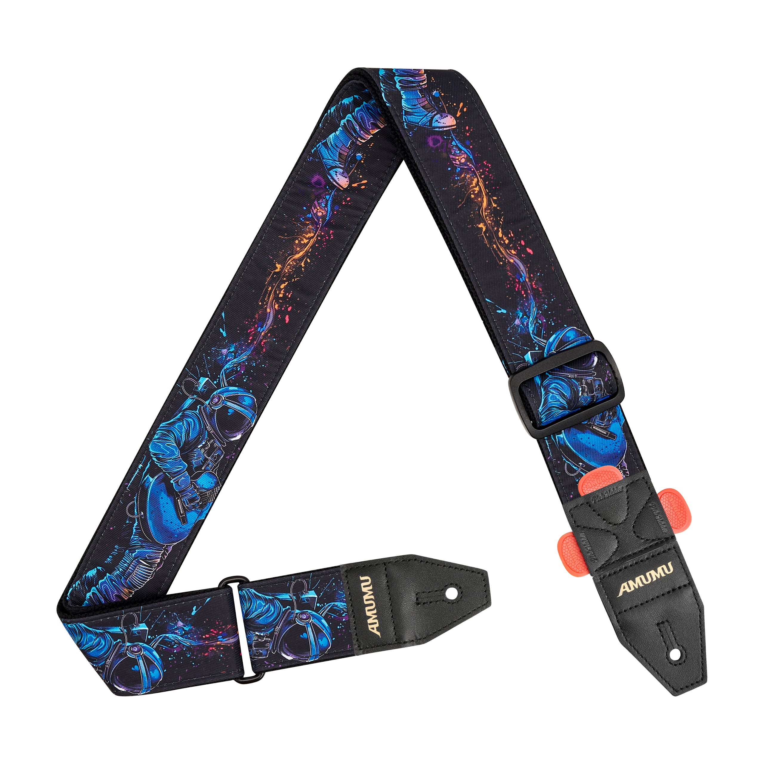 AMUMU PET14P-BB-R 2" Guitar Strap – Blue Black Printed Polyester with Top Grain Leather Ends, Strong Webbing for Acoustic, Electric & Bass Guitars