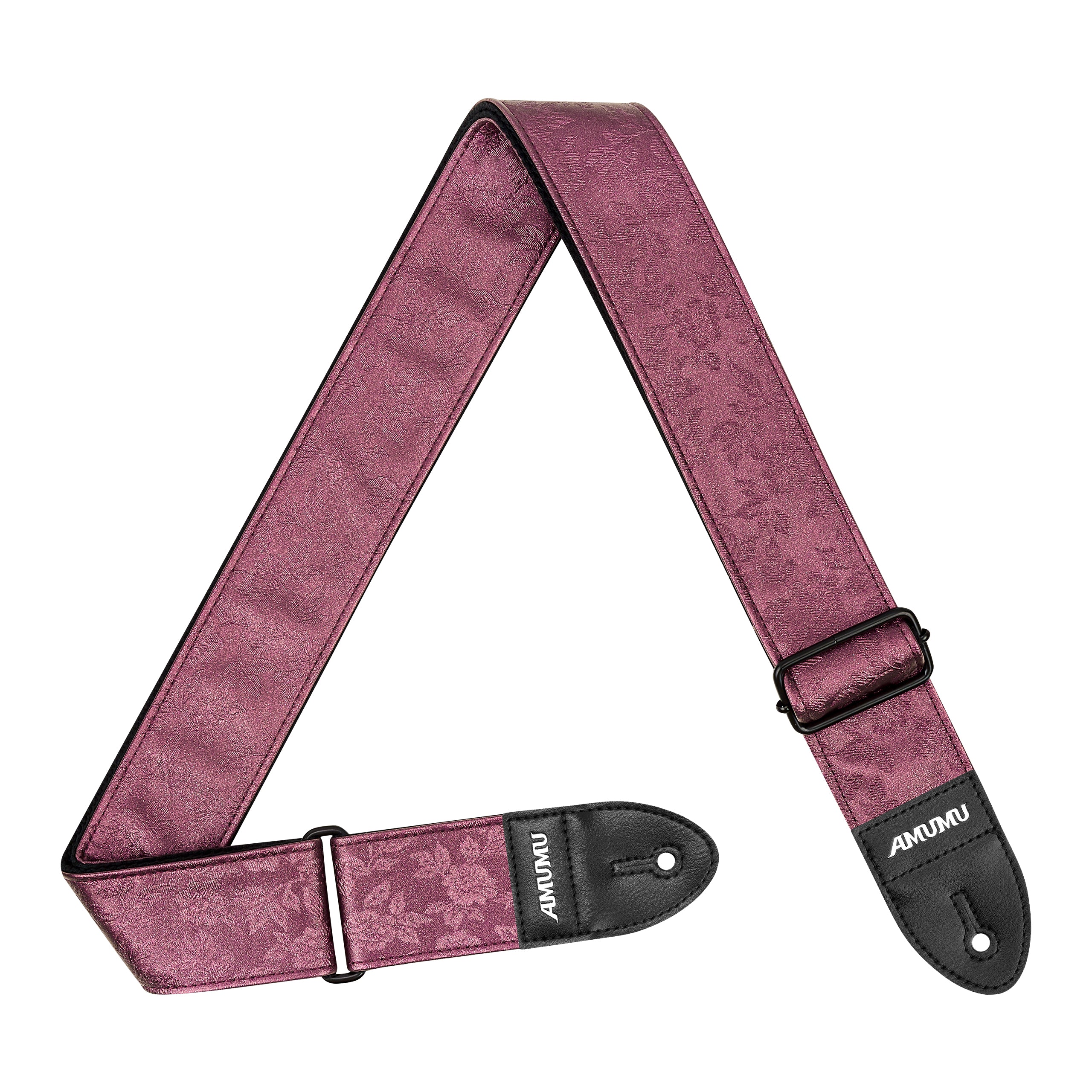 The AMUMU PVC02EB-RD-V Glazed Blossom Guitar Strap features a glossy red embossed PVC leather design with a soft cotton blend backing and reinforced vegan leather ends. Adjustable from 92–160cm, it delivers bold modern style, comfort, and dependable support for acoustic, electric, and bass guitars.