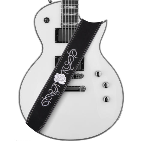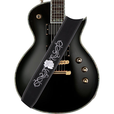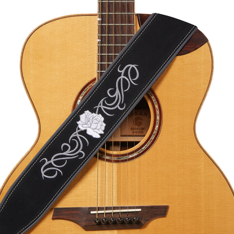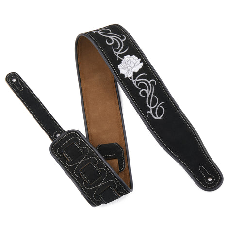 Amumu Suede Leather Flower Embroidered Guitar Strap -LE07-BK