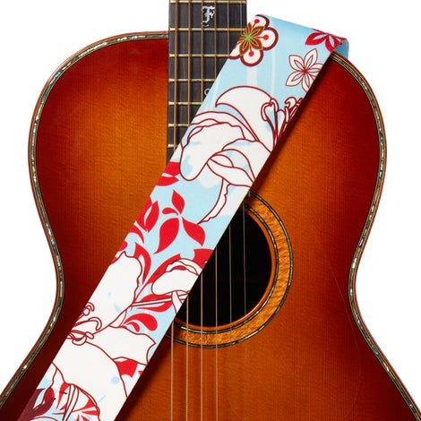 AMUMU White Lily Flower Light Blue Polyester Cotton Guitar Strap -PC05P